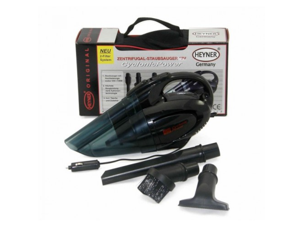 Автопылесос 12 в 138 Вт "Мощь циклона", 3 насадки. Сумка для хранения. Длина кабеля: 300 см.