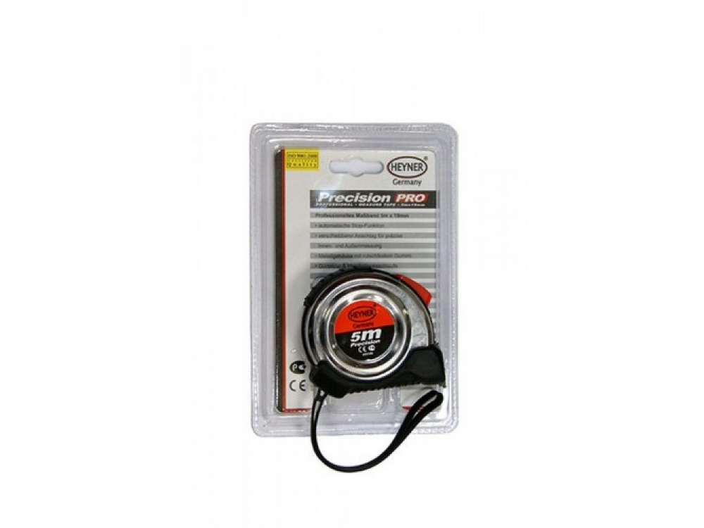 Рулетка профессиональная 5 м. Функция - автоматический стоп. Металлический корпус резиновым покрытием. Поясной зажим и наручный ремешок.