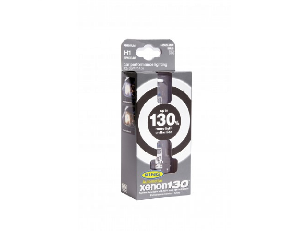 Автолампа XENON +130% в пластиковой упаковке (по 2 шт): 12 вольт, мощность 50W, цоколь H1 (P14.5s)