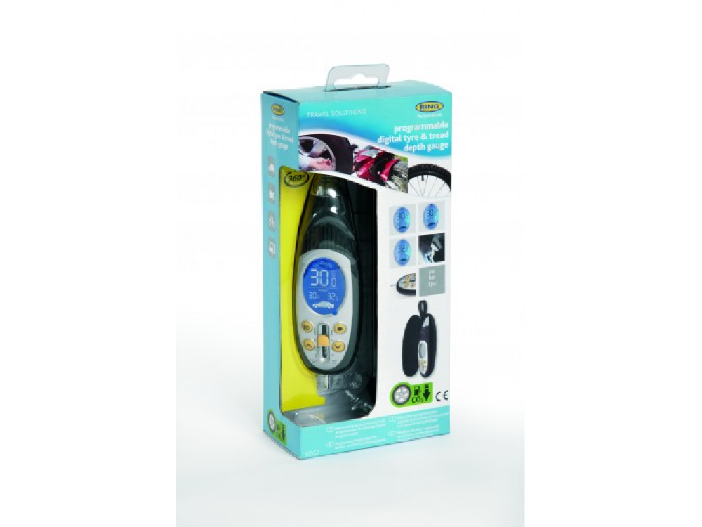 Программируемый цифровой манометр с устройством для измерения глубины протектора Ring RTG7 автоматически сохраняет рекомендуемое давление для шин, головка вращается на 360 ° для легкого использования, не зависимо от положения клапана шины. Включает измеритель глубины протектора шины, который идеально подходит для проверки глубины протектора шины. Большой легко читаемый цифровой дисплей с синей подсветкой. Светодиодная подсветка для легкого нахождения шинного клапана ночью и при слабом освещении.