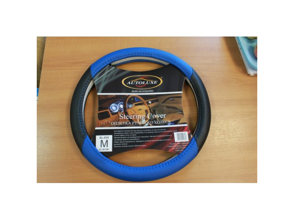 Оплетка д/руля AL-035 (син.) L