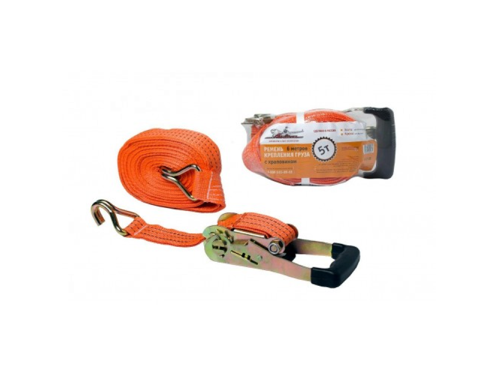 1. Ремень крепления груза с храповиком 5 т. 2. 6 м. в вакуумной целлофановой упаковке с этикеткой – 1 шт.