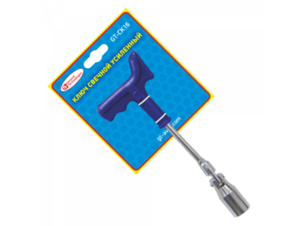Благодаря тому, что данная модель изделия обладает шарниром можно без труда осуществлять работу в тяжелодоступных местах не затрачивая при этом лишних усилий. Ручка представленной модели изделия является обрезиненной и не скользит в руке, что значительно увеличивает надежность и комфорт в осуществлении работы. Свечной ключ используется непосредственно для осуществления установки и демонтажа автомобильных свечей зажигания. Головка ключа произведена из высокопрочной и качественной углеродистой стали.