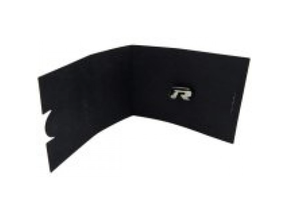 Значок с логотипом R", упакован в черную картонную коробку-книжку, также украшенную серебристым логотипом "R". Размер значка: 15 x 7 мм."